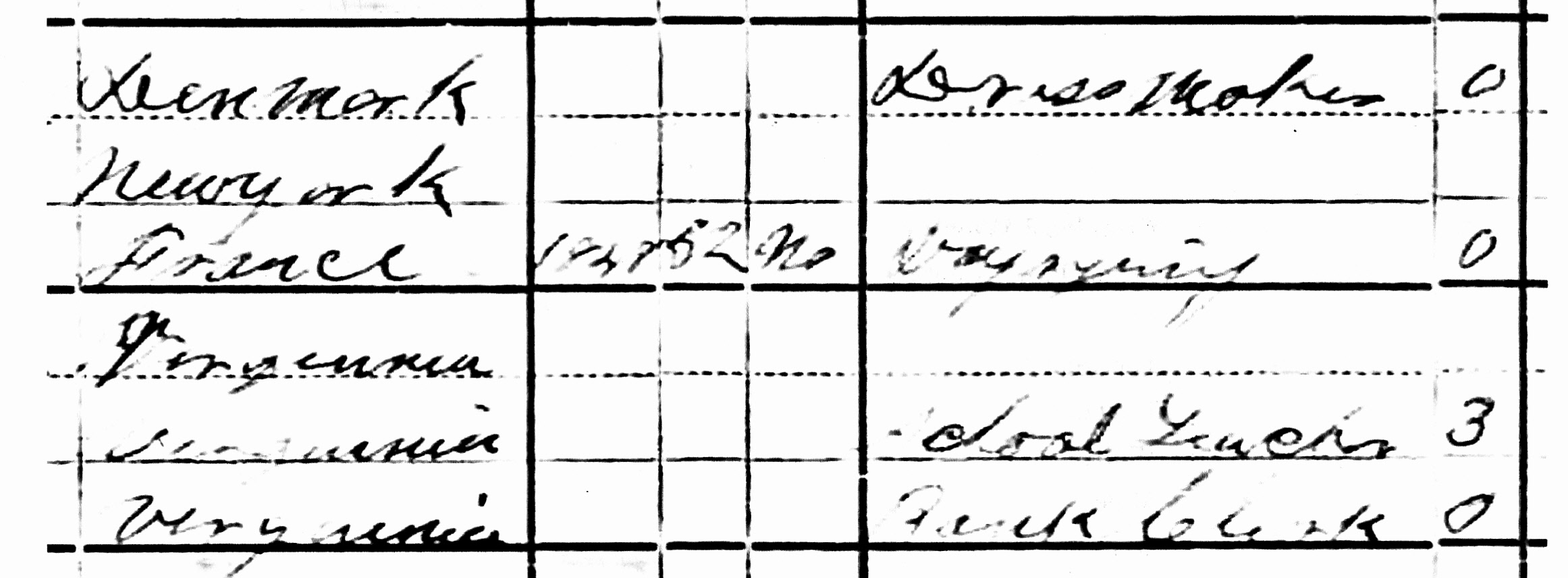 He may have still been working as a photographer in 1900, but his occupation as given on this census record is difficult to decipher – it may say daguerreotyping, although that term was rarely used so late as 1900. His occupation is written in next to ‘France’ (mother’s birth place). Anyone out there able to tell me what this says?
