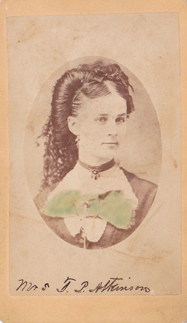 Mrs. T. P. Atkinson, hand-tinted carte de visite portrait by J. P. Blessing & Bro., Houston TX (author’s collection)