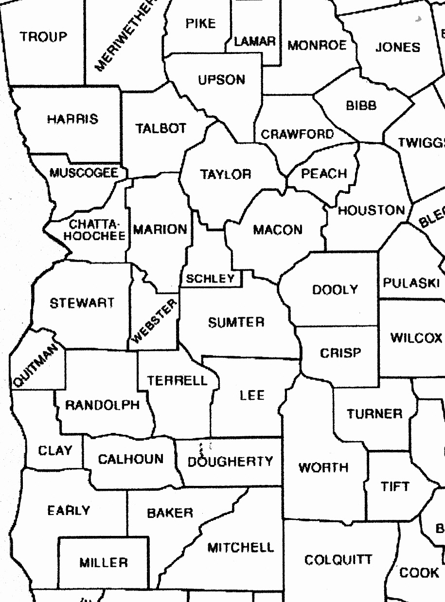 Through newspaper articles, advertisements and various other records, I have been able to tell that F.P. Pepper concentrated his business primarily in the smaller towns of southwest Georgia, and the southern part of west central Georgia.  He took photographs in the Georgia counties of Dougherty, Sumter, Turner, Marion, Dooly,  Terrell, Macon, Talbot, and probably Taylor and Randolph.