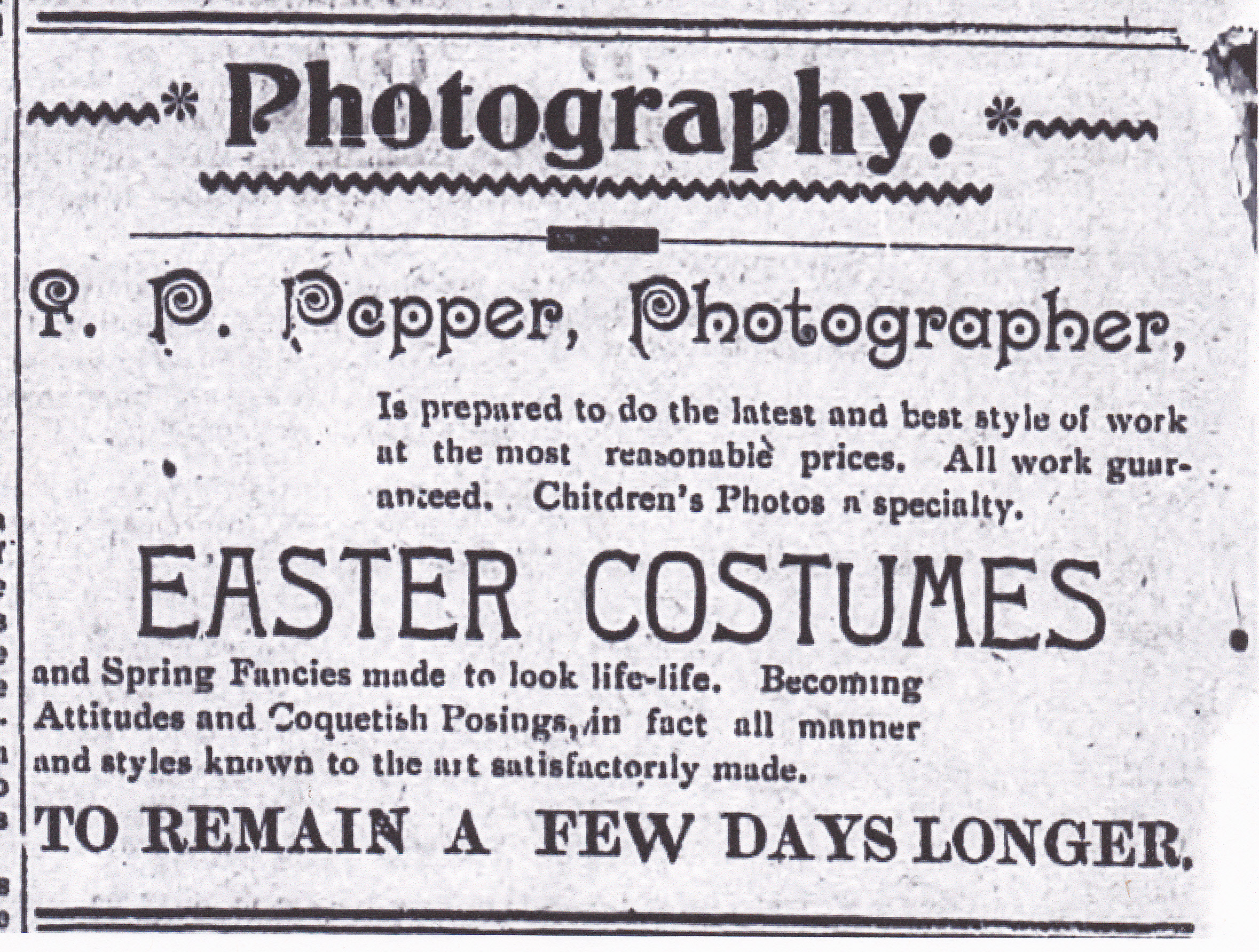 So much to do, so little time. I hope this post brings out more F. P. Pepper photographs from their hiding places, and that it brings out more information on the man himself. Meanwhile, have fun with your own hunting and gathering of information on those people who intrigue you!
