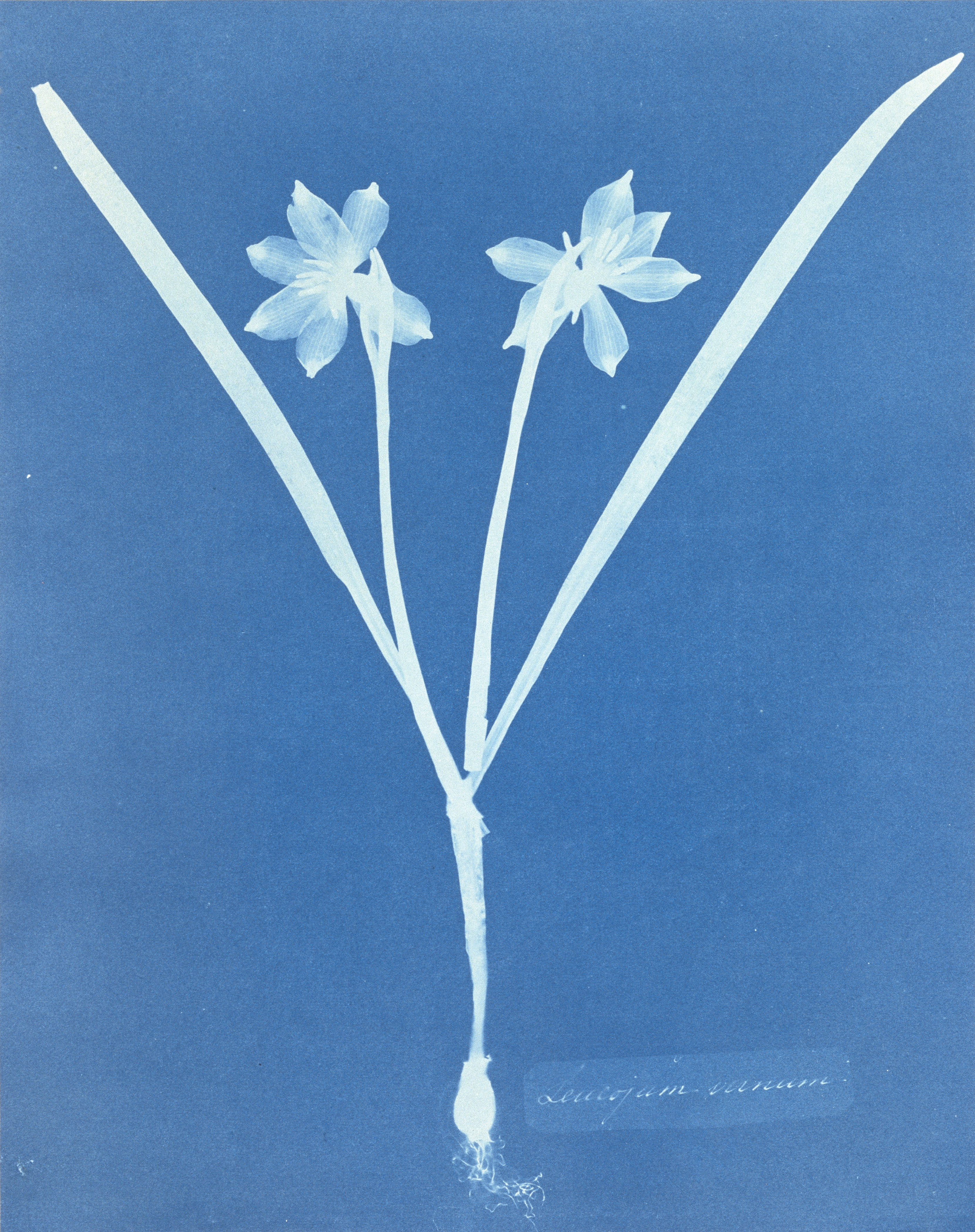 AtkinsLeucojamVAriumAnna Atkins & Anne Dixon, Cyanotype of Leucojam Varium,  1854; courtesy of the Getty Open Content Program