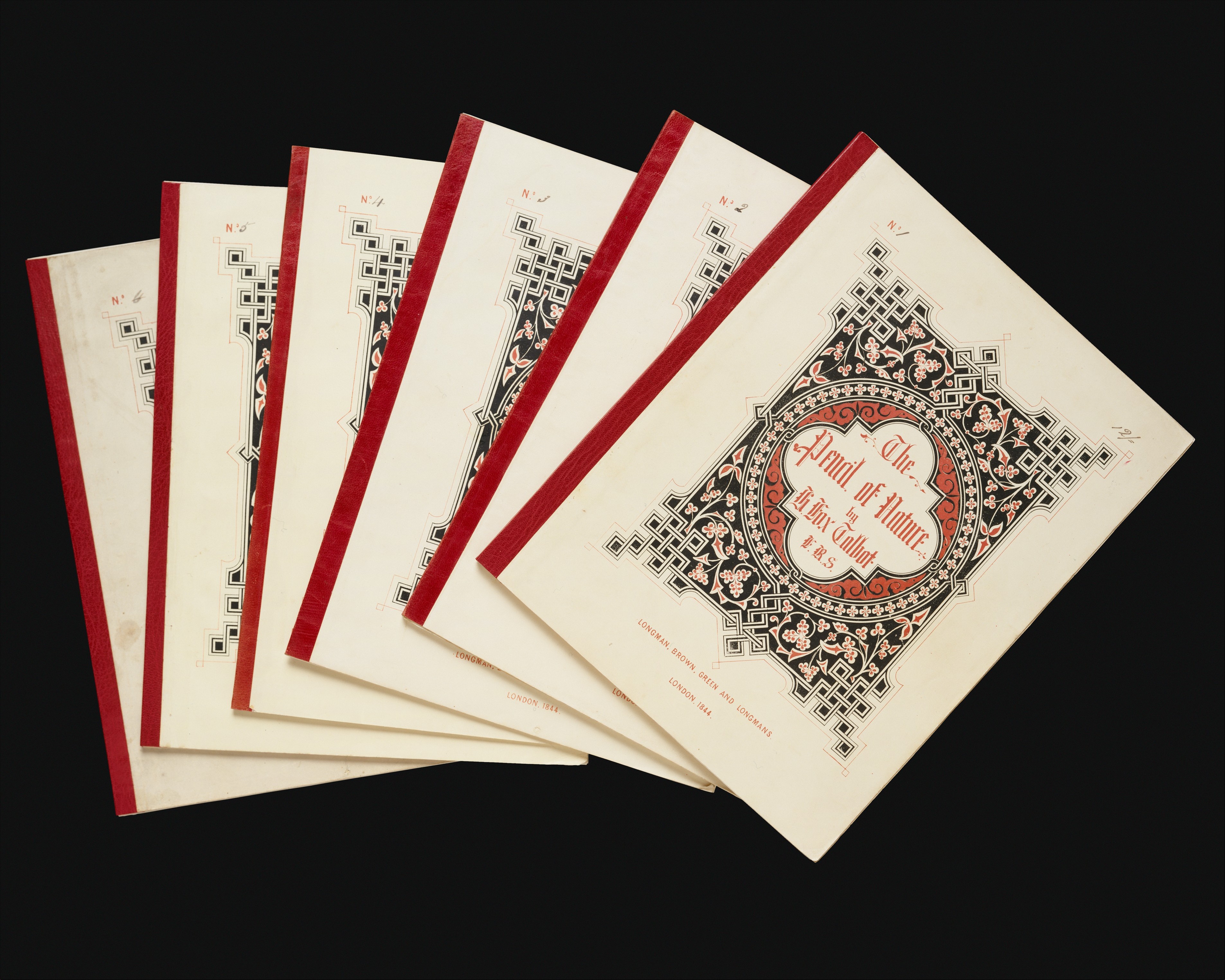 Henry Fox Talbot’s The Pencil of Nature, printed in 6 parts, with salted paper prints; Metropolitan Museum of Art, Gift of Jean Horblit, in memory of Harrison D. Horblit, 1994, no. 1994.197.1–.6