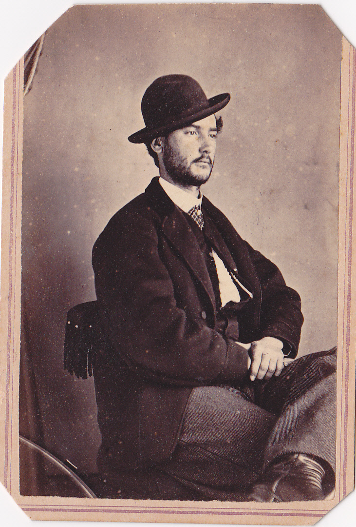 Three-quarter view of gent in Bowler hat, ca. 1870 carte de visite by P. Prophitt, LaGrange & West Point, Georgia; collection of E. Lee Eltzroth