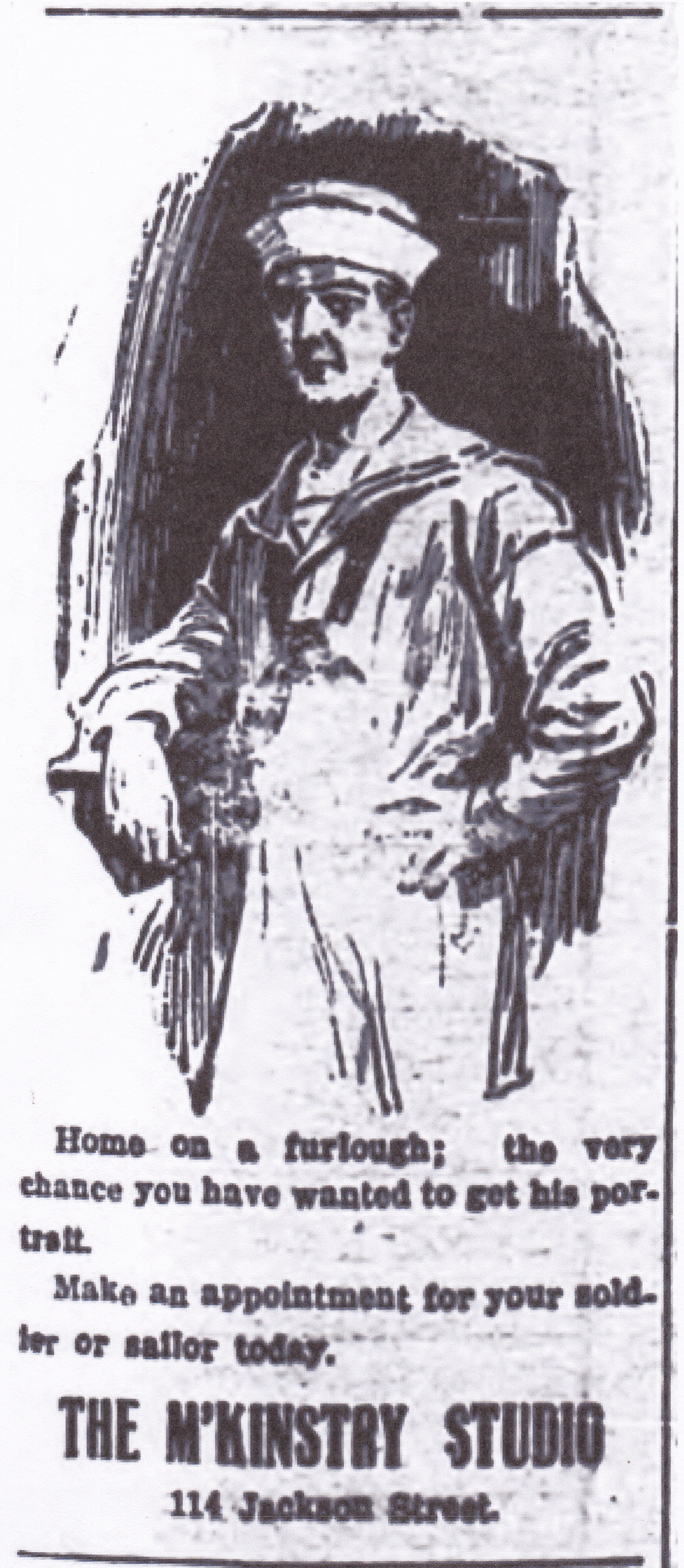 Illustrated advertisment for studio of G. P. McKinstry (1878-1923) Americus Times -Recorder May 2, 1918 p.5 c.1