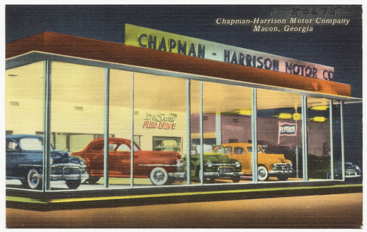 Chapman-Harrison Motor Company, Macon, Georgia. Card. 1930. Digital Commonwealth, http://ark.digitalcommonwealth.org/ark:/50959/w3763h37x (accessed July 04, 2016).