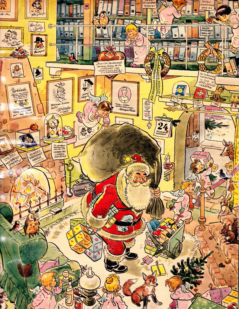 Greetings of the Season to all of my readers! Although my lead image is not a photograph, you may notice that Santa has photographs (which are drawn) on his walls, as well as volumes of thank you notes. Those are all the photos of and notes from the dignitaries and famous folks who love him. I apologize that you cannot read the caption at the bottom of my photograph of the illustration: Santa is preparing to leave, and saying to his helpers (not elves, but little angels) “So children, it’s really getting late!” My family always called this illustration “Santa Archivist,” and it was tacked on my father’s office door until he retired, then it was posted on my office door, and now it is scotchtaped on my home office door each holiday season until January 6th.