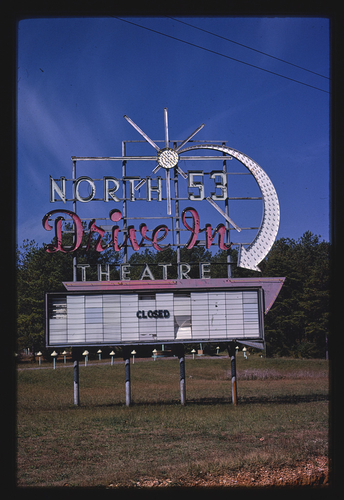 John Margolies, North 53 Drive-In Theater sign, Route 53, Rome, Georgia, 1980, color transparency; Library of Congress Prints and Photographs Division, Reproduction Number: LC-DIG-mrg-00332