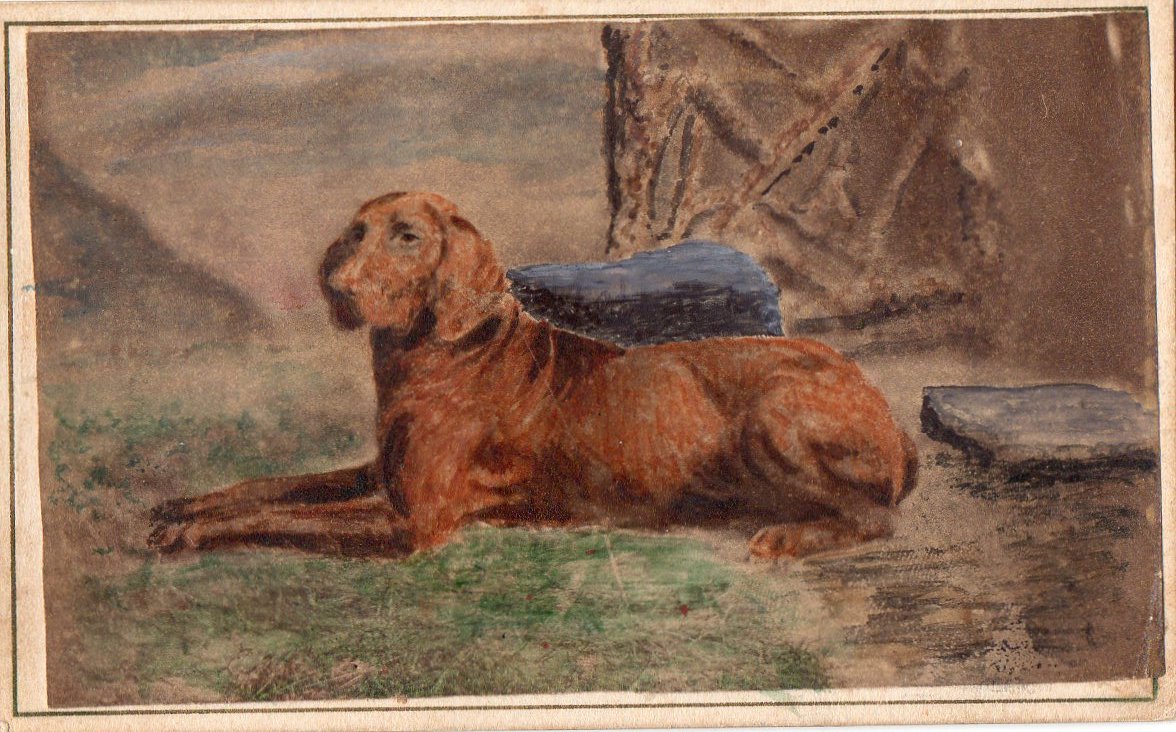 Carte-de-visite back mark, hand-colored dog by T. J. Bowers, ca. 1870; collection E. Lee Eltzroth