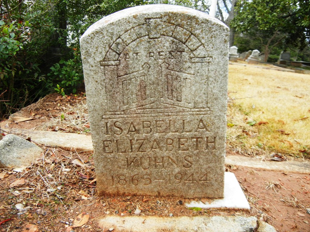 She was about five years old in October 1870, when her family moved to Atlanta, Georgia, where Isabella attended the Marietta Street School. It was here her father began the Kuhns photography studio that lasted over fifty years in the Atlanta area.